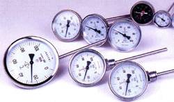 应用 双金属温度计是一种测量中低温度的现场检测仪表。可以直接测量各种生产过程中的-80℃-+500℃范围内液体蒸汽和气体介质温度。主要特点 现场显示温度,直观方便安全可靠,使用寿命长;抽芯式温度计可不停机短时间维护或更换机芯。轴向型、径向型、135º型、万向型等品种齐全,适应于各种现场安装的需要。